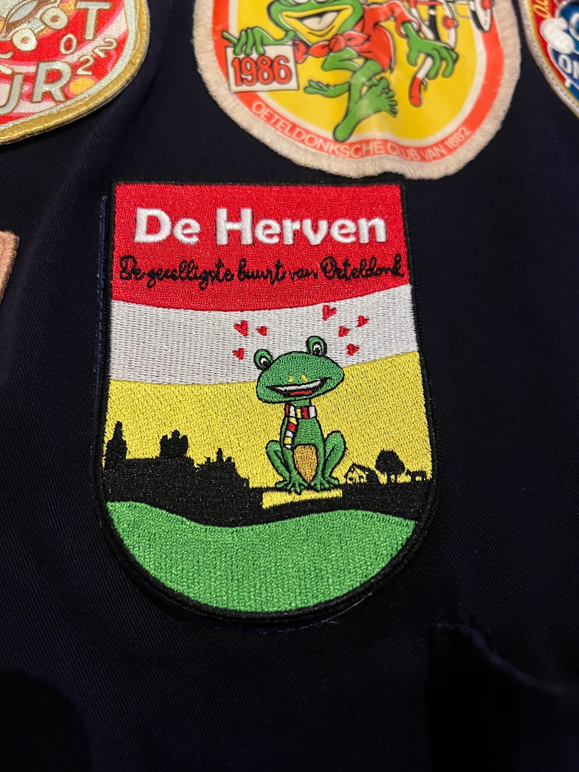 Koop alleen bij ons dit unieke carnavalsembleem van De Herven en loat zien waor oe kiet staot! Naai hem op je kiel of jasje en toon vanaf deze carnaval met dit embleem jouw liefde voor de gezelligste buurt van Oeteldonk. De inspiratie voor dit ontwerp komt van het charmante en landelijke karakter van de buurt. Als je goed kijkt zie je met een beetje fantasie D'n Boerderij, Hervense dijk en een verwijzing naar de koeien die in De Heinis staan te graaien.